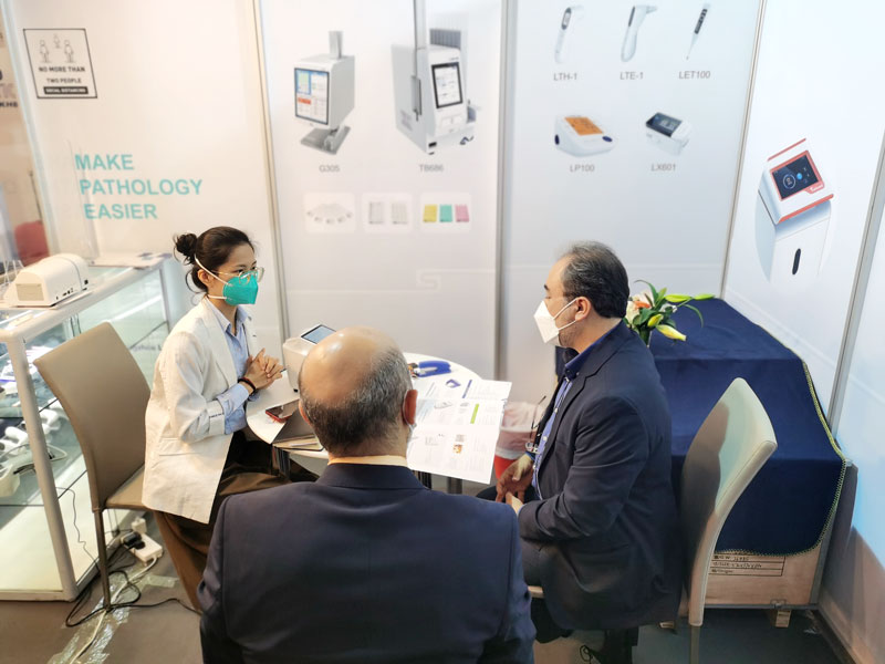 展会期间蓝勃生物的小伙伴以专业、热情的服务态度接待了来自哥伦比亚、巴西、韩国、日本、巴基斯坦、土耳其、德国等世界各地的客户,并通过现场操作教学展示,让客户们进一步了解了蓝勃产品的性能和优势,并现场深入探讨未来的合作方案。